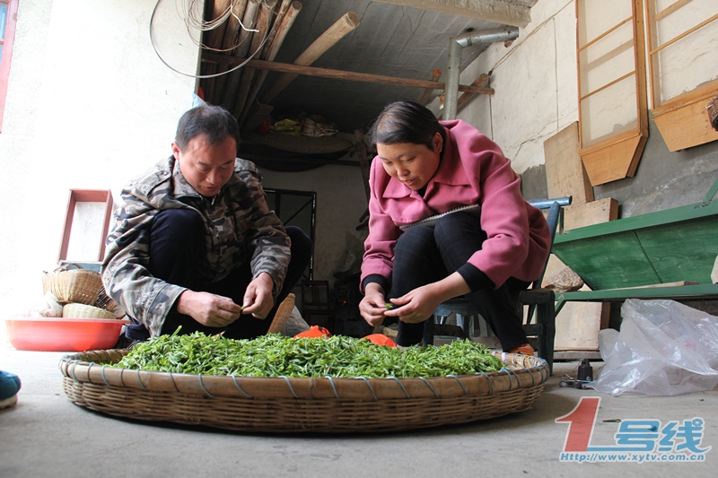家住浉河港鄉(xiāng)白廟村6組的石友金是個(gè)地地道道的茶農(nóng),記者來(lái)到他家時(shí),他正和妻子一起挑揀采茶工剛剛采回來(lái)的毛尖。