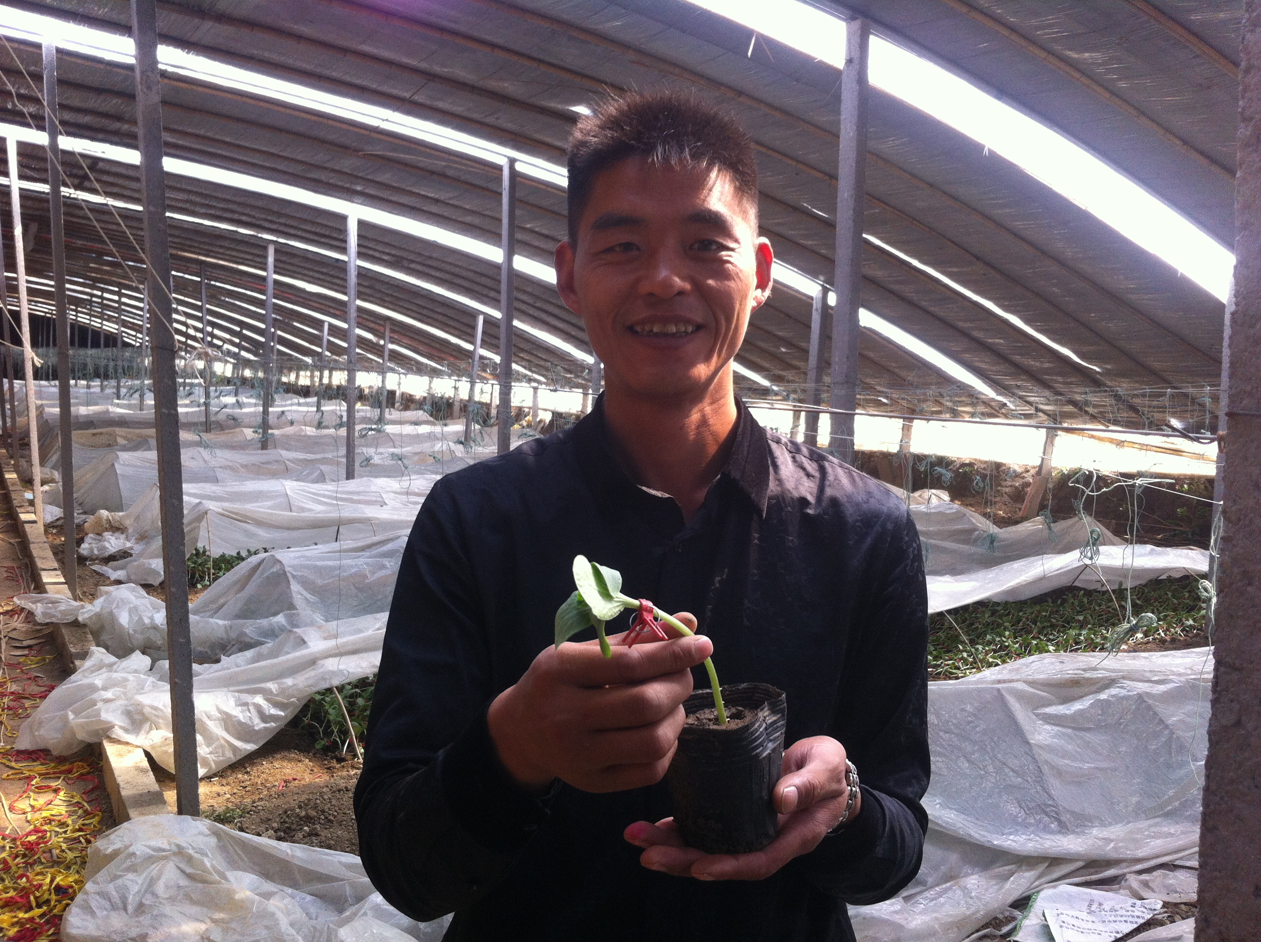 徐英軍捧著剛嫁接的黃瓜幼苗告訴記者再次做農(nóng)民讓他很是高興。