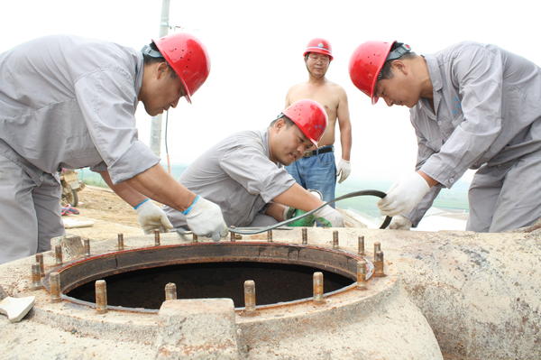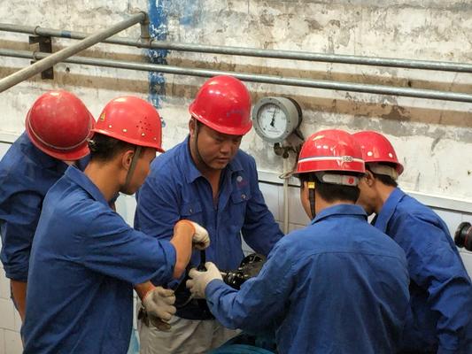 央廣網(wǎng)河南分網(wǎng)消息 在平頂山白龜山水庫(kù)的固定泵房里,侯志勇正和工友在檢修閥門蝸輪箱,旁邊放著經(jīng)常背在他身上的30公斤重的工具包,鐵錘、管鉗、扳手等散落一地。轟隆的機(jī)鳴聲,悶熱的環(huán)境里,他一待至少四個(gè)小時(shí),豆大的汗珠順著臉頰流進(jìn)脖子里,那雙沾滿機(jī)油的巧手不知已經(jīng)檢修過(guò)多少機(jī)器……身為平頂山自來(lái)水公司的管道維修工,這是他最近的任務(wù)。他常說(shuō):“身為一名供水人,我要為供水做點(diǎn)什么!”
