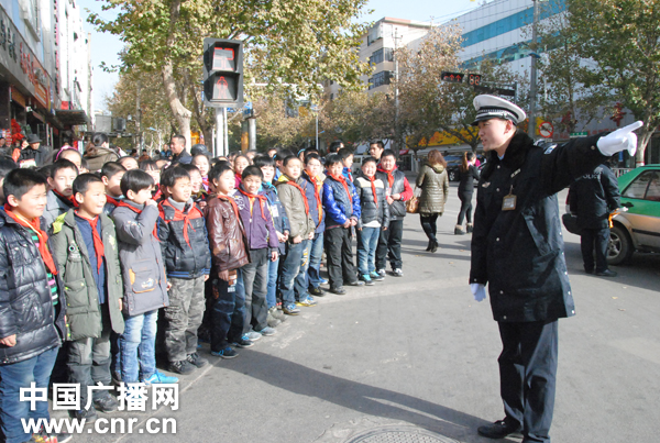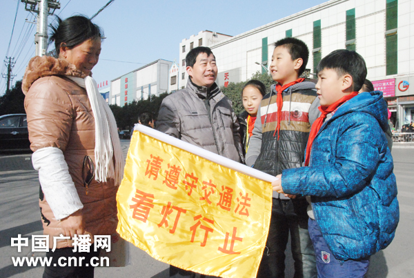 12月5日上午10點,在新密市農業(yè)路與東大街交叉口的紅路燈下,該市實驗小學的百余名小學生們列隊站在路沿石上,該市公安局交警大隊五中隊的民警向學生們宣講如何看信號燈、如何過馬路等基本交通安全常識。隨后,民警將印有“請遵守交通法 看燈行止”字樣的小黃旗發(fā)給學生們,組織學生們跟隨民警分別來到路口的四個方向進行交通安全活動體驗。五年級學生黃潤閣和幾名同學踴躍的規(guī)勸市民遵守交通規(guī)則,不要闖紅燈和亂穿馬路。一名女士在闖紅燈過馬路后,被黃潤閣和同學們拿著小黃旗上攔下,并指出了這名女士的違法行為,勸阻她一定要看燈行止,安全第一。面對小學生們善意的勸解,這位女士不好意思的捂住了臉,埋著頭虛心受教,并保證不再闖紅燈過馬路。(通訊員:申建中 方亞娟)