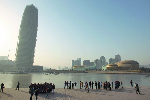 美麗的鄭東新區(qū)吸引人們紛紛拍照留影