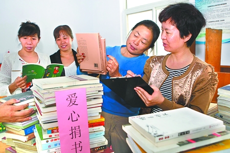 9月25日,焦作市解放區(qū)民主北路社區(qū)工作人員在登記群眾捐獻(xiàn)的圖書(shū)。該區(qū)開(kāi)展“金秋捐書(shū)”活動(dòng),轄區(qū)居民積極響應(yīng),3萬(wàn)余冊(cè)圖書(shū)香飄樓院。 李良貴 攝