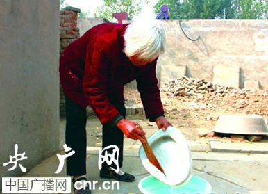 由于家里沒有能掙錢的人,唯一的收入就是種地。她留下生活必需的糧食,把余糧賣掉換錢給婆婆看病。即使這樣,也遠(yuǎn)遠(yuǎn)解脫不了生活中的困境。為此,趙枝妮開始到村附近的工廠打零工。年逾六旬的趙枝妮每天一路小跑,奔波在家、田地、路上和工廠里。地里的農(nóng)活、一日三餐、料理家務(wù)、照顧婆婆……生活的艱辛壓得趙枝妮喘不過氣來,但她從沒有說過一聲苦和累。因常年高負(fù)荷勞累,腰椎盤突出、高血壓、肩周炎等“毛病”都找上了趙枝妮,她曾多次昏倒在田地里、爐灶前。但17年過去了,97歲的婆婆在趙枝妮的照顧下,依舊頭腦清醒,眼不花,耳不聾。趙枝妮的親娘也已經(jīng)90多歲,身體不好,她只能帶著深深的愧疚,趁中午在村里打工的兒媳回家吃飯時(shí),替她照看婆婆一會(huì),自己急匆匆的趕回娘家去探望老母親。母親體諒枝妮的困難,每次都攆她:“我沒事,你快回吧,你婆婆跟前離不了人!