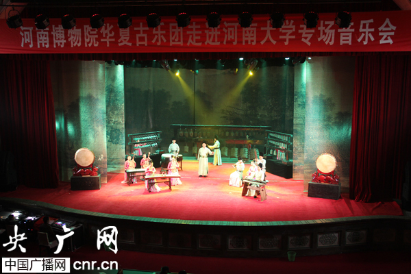據(jù)悉,河南博物院華夏古樂團(tuán)曾在上海世博會(huì)、國家大劇院等地方演出,并受邀到美國巡演。作為“高雅藝術(shù)進(jìn)校園”的活動(dòng)之一,本次活動(dòng)由省文化廳、省博物院、省古代音樂文化研究會(huì)共同主辦。(通訊員 董蘭蘭 攝影 史周賓)