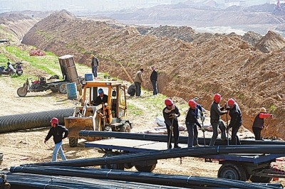 2010年3月,記者在同一地點(diǎn)的拍攝汝河水系改造工程施工場(chǎng)景。