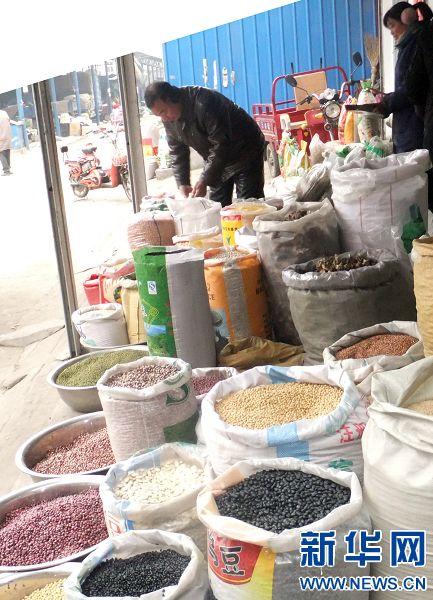 1月7日,市民在河南省平頂山市寶豐縣農(nóng)貿(mào)市場(chǎng)選購熬制臘八粥的五谷雜糧。