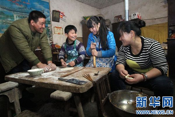 央廣網(wǎng)河南分網(wǎng)消息 據(jù)新華網(wǎng)河南頻道報(bào)道:1月27日,在河南焦作溫縣趙堡鎮(zhèn)北平皋村,留守兒童閆夢(mèng)帆(右二)、閆夢(mèng)凱(左二)姐弟倆和父母一起包包子。