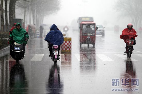 當日,河南省大部地區(qū)迎來雨雪天氣。新華社發(fā)(牛書培 攝)