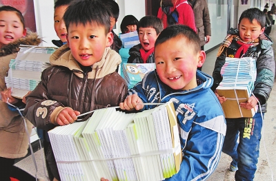 央廣網(wǎng)河南分網(wǎng)消息 據(jù)河南日報(bào)報(bào)道:2月17日是寒假后河南省大多數(shù)中小學(xué)開學(xué)第一天。圖為內(nèi)黃縣第七實(shí)驗(yàn)小學(xué)的同學(xué)們在搬運(yùn)新學(xué)期的教科書。當(dāng)日,內(nèi)黃縣各中小學(xué)生迎來農(nóng)歷馬年新學(xué)期的到來。劉肖坤 劉院軍 攝