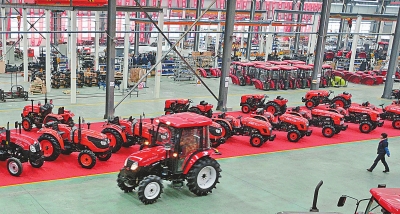 ▲2月18日,洛陽(yáng)豐收農(nóng)業(yè)機(jī)械裝備有限公司的工人在加緊生產(chǎn)。該企業(yè)位于宜陽(yáng)縣產(chǎn)業(yè)集聚區(qū),主導(dǎo)產(chǎn)品為多種大中型拖拉機(jī),年生產(chǎn)能力5萬(wàn)臺(tái)。新春伊始,訂單不斷增加,呈現(xiàn)出產(chǎn)銷(xiāo)開(kāi)門(mén)紅。田義偉 攝