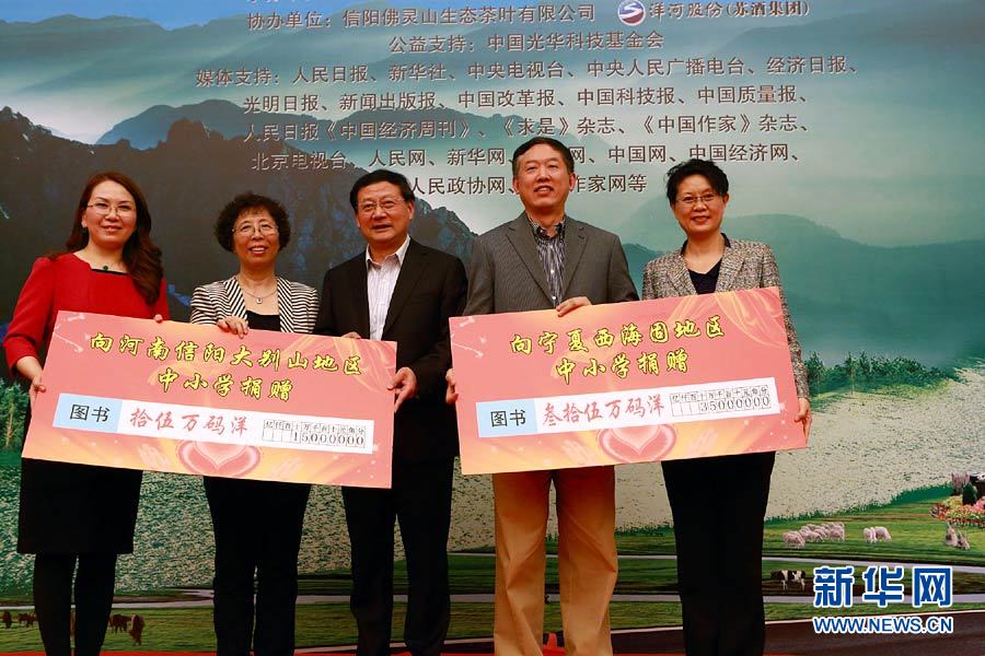 央廣網(wǎng)河南分網(wǎng)消息 據(jù)新華網(wǎng)報道:4月18號,全國政協(xié)及民盟中央婦委會代表、寧夏自治區(qū)代表在“捐贈儀式”上亮相。當日,民盟中央婦委會攜手寧夏、河南兩地代表在京舉行“《梓涵行吟集》首發(fā)捐贈暨著名書畫家作品義展”公益活動,向?qū)幭奈骱9毯秃幽闲抨柎髣e山中西部兩地區(qū)中小學捐贈50萬碼洋圖書,建設“民盟愛心書屋”。(新華社記者 李明放 攝)