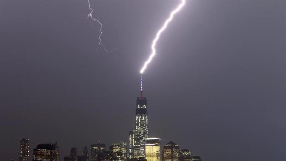 央廣網(wǎng)河南分網(wǎng)消息 據(jù)國際在線報道:當(dāng)?shù)貢r間23日晚間到24日凌晨,美國紐約遭遇暴風(fēng)雨和閃電襲擊。其間,閃電多次擊中世貿(mào)中心頂部,呈現(xiàn)出史詩般壯觀景象,不少攝影愛好者捕捉了到了這一震撼畫面。