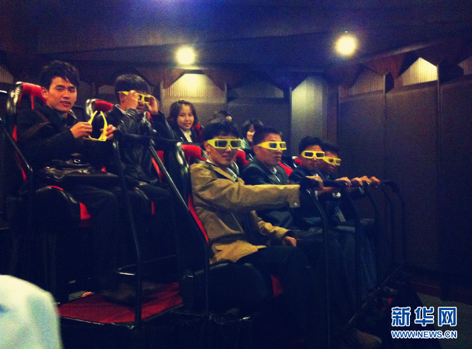 平壤綾羅人民游樂園3D電影院。短片為4分鐘,有開飛機(jī)、賽車、開潛艇等三部身臨其境的電影短片供體驗(yàn)。外國(guó)人收費(fèi)為4歐元(1歐元約合人民幣8.24元),朝鮮人收費(fèi)為每部4000朝幣(市場(chǎng)價(jià)約合人民幣4元)。新華社記者杜白羽 攝