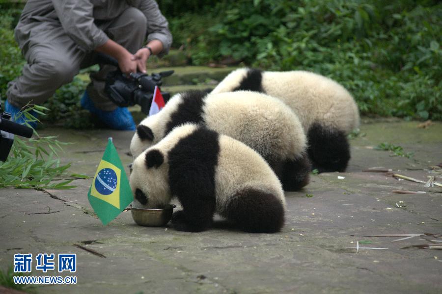 央廣網(wǎng)河南分網(wǎng)消息 據(jù)新華網(wǎng)報(bào)道:記者11日從中國(guó)保護(hù)大熊貓研究中心獲悉,2014年巴西世界杯足球賽期間,熊貓頻道、搜狐社區(qū)將聯(lián)合推出“熊貓預(yù)測(cè)世界杯”活動(dòng)。中國(guó)保護(hù)大熊貓研究中心將為活動(dòng)提供必要支持。圖為三只小熊貓?jiān)陬A(yù)測(cè)巴西世界杯揭幕戰(zhàn)巴西隊(duì)對(duì)陣克羅地亞隊(duì)的比賽結(jié)果。(攝于6月11日) 新華社發(fā)