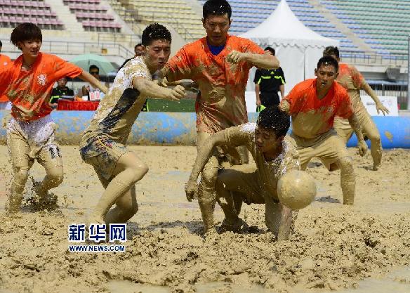 央廣網(wǎng)河南分網(wǎng)消息 據(jù)新華社報道:6月29日,參賽隊員在泥漿中奮力拼搶。當(dāng)日,泥漿足球世界杯中國賽在北京月壇體育場舉行了半決賽和決賽,共有4支隊伍參與角逐,經(jīng)過三個多小時的激戰(zhàn),中國銀監(jiān)會足球隊取得了北京站的冠軍。新華社發(fā)(李志明 攝)