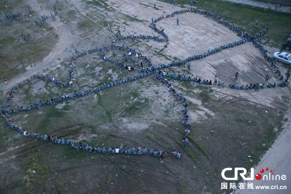 2014年7月2日,長(zhǎng)春市某所高校內(nèi)一位同學(xué)發(fā)動(dòng)近千名同學(xué)向女同學(xué)求愛。同學(xué)們拼湊成巨大的心,一箭穿心等造型,場(chǎng)面十分壯觀。