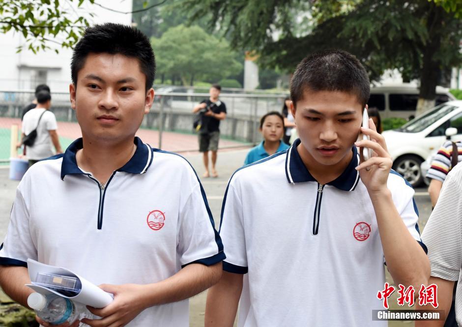 7月3日,江西“奪刀少年”柳艷兵(右)、易政勇走出考場(chǎng),一起回宿舍。