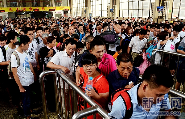 央廣網(wǎng)河南分網(wǎng)消息 據(jù)新華網(wǎng)河南頻道報(bào)道:隨著各高校陸續(xù)放假,以及旅游觀光人數(shù)的增加,鄭州火車站迎來今年暑運(yùn)首個(gè)客流高峰。據(jù)了解,今年暑運(yùn)期間,鄭州火車站客流主要以學(xué)生流、旅游流和民工流為主,目前日均發(fā)送人數(shù)在12萬人次以上,鄭州火車站共增開8趟直通臨客應(yīng)對(duì)客流高峰。(記者 李安攝)