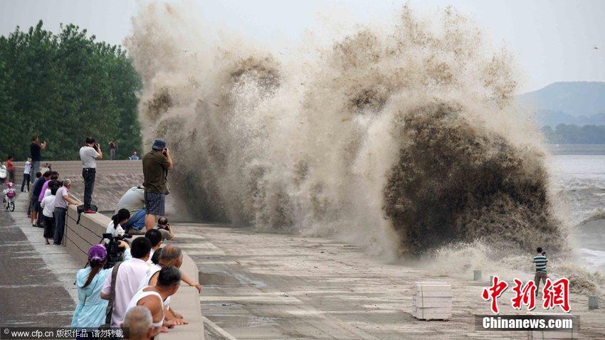 央廣網(wǎng)河南分網(wǎng)消息 據(jù)中新網(wǎng)報道:8月12日,浙江省嘉興市,中午12點26分,在錢塘江北岸海寧丁橋東段罕見的交叉潮過后,洶猛的錢江大潮直撲海塘,掀起幾十米高的巨浪,非常壯觀。一名攝像工作者正在拍攝壯觀大潮,險些被大潮卷入江中,這驚險一幕被許多觀潮愛好者記錄下來。王超英 攝 圖片來源:CFP視覺中國