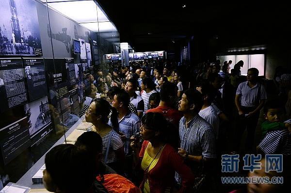 8月14日,人們在侵華日軍南京大屠殺遇難同胞紀念館參觀。