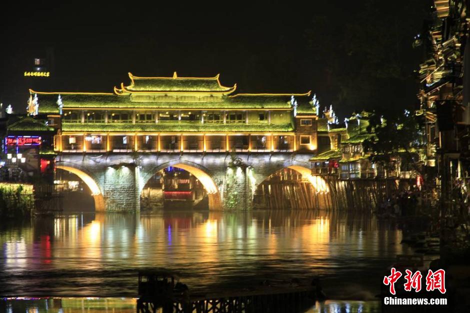 8月16日晚,在或強(qiáng)或弱、或冷或暖的色調(diào)里,湖南鳳凰古城的“山、水、城、人、文”形成美侖美奐的“夜鳳凰”,讓夢(mèng)回故鄉(xiāng)的意境與韻律隨著河水靜靜流淌。在湖南鳳凰縣超歷史記錄“7.15”洪災(zāi)一個(gè)月后,鳳凰古城風(fēng)景名勝區(qū)正式對(duì)外開放,而包括一江兩帶、三橋四山體等內(nèi)容的鳳凰古城沱江風(fēng)光帶夜景亮化工程也順利重啟。黃曉軍 攝