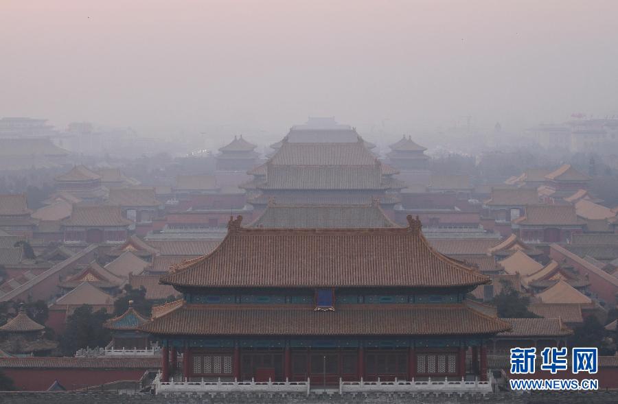 央廣網(wǎng)河南分網(wǎng)消息 1月4日,北京故宮籠罩在霧霾之中。當(dāng)日,中央氣象臺(tái)發(fā)布霾黃色預(yù)警,預(yù)計(jì)4日8時(shí)至5日8時(shí),北京中南部、天津中西部、河北中南部、河南北部、山東西北部和南部、江蘇北部和南部、四川盆地東南部等地的部分地區(qū)有中度霾,局地有重度霾。新華社發(fā)(劉憲國(guó) 攝)