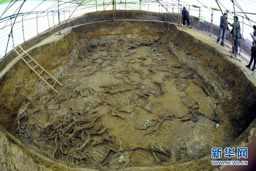 這是1月6日拍攝的郭家廟墓地發(fā)掘的大型馬坑。