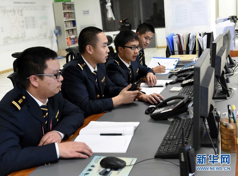 1月6日,昆明長水國際機場運行保障部燈光室的幾名員工在助航燈光監(jiān)控主站值班。
