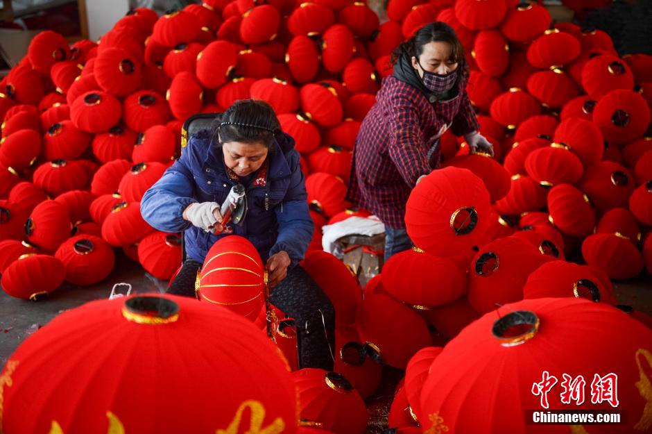2月11日,工人趕制燈籠。春節(jié)將至,位于安徽省合肥市廬陽(yáng)工業(yè)區(qū)的某工藝宮燈制造有限公司抓緊制作節(jié)日訂單燈籠。據(jù)了解,該公司每年要生產(chǎn)近50萬(wàn)只燈籠,產(chǎn)品銷往全國(guó)各地,并出口東南亞等國(guó)家和地區(qū)。中新社發(fā) 張婭子 攝