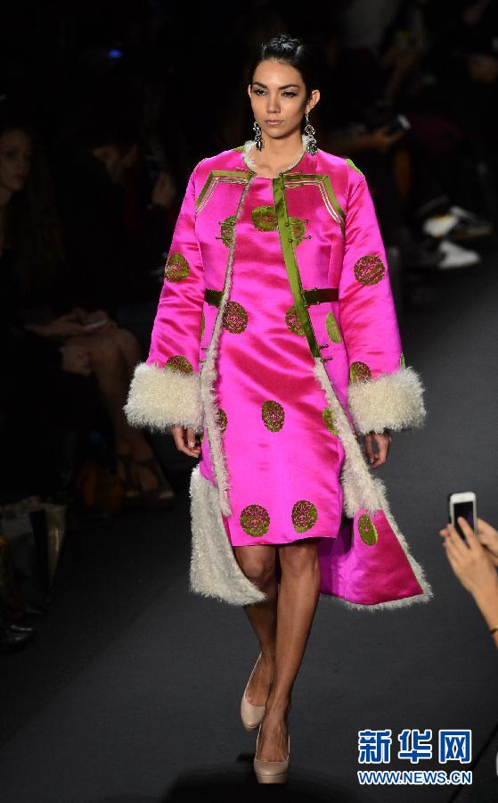 央廣網(wǎng)河南分網(wǎng)消息 2月13日,在美國(guó)紐約林肯中心,模特在紐約時(shí)裝周MONGOL時(shí)裝發(fā)布會(huì)上走秀。當(dāng)日,時(shí)裝品牌MONGOL在2015紐約秋冬時(shí)裝周上展示今年將推出的時(shí)尚新品。 新華社記者王雷攝