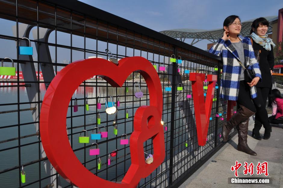 央廣網(wǎng)河南分網(wǎng)消息 2月14日,無(wú)錫蠡湖東畔為有情人專門(mén)打造了“LOVE”造型的浪漫許愿墻引來(lái)眾多市民圍觀拍照,在許愿墻邊,情侶們可以在象征著承諾的心形“愛(ài)情鎖”上寫(xiě)下對(duì)彼此的愛(ài)與諾言,一起按下鎖扣,將這份甜蜜誓言牢牢鎖在許愿墻之上,見(jiàn)證彼此一生難忘的瞬間。孫權(quán) 攝