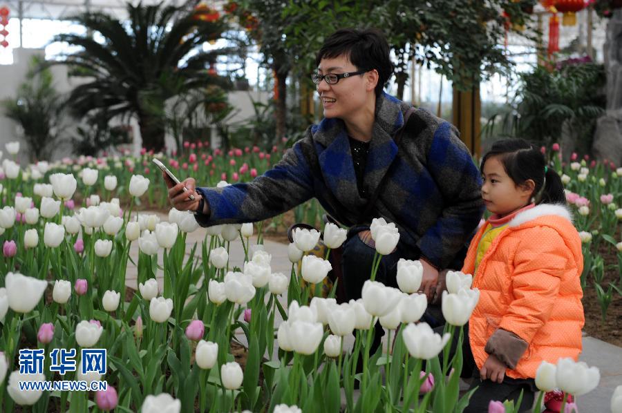 央廣網(wǎng)河南分網(wǎng)消息 2月17日,一位市民帶孩子在鄭州綠博園賞花游園。羊年春節(jié)將至,河南鄭州市內(nèi)街道、公園、廣場、景區(qū)到處張燈結(jié)彩;在鄭州市綠博園,一年一度的郁金香迎春花展也將于農(nóng)歷大年初一正式開幕,為節(jié)日增添喜氣。新華社記者 朱祥 攝