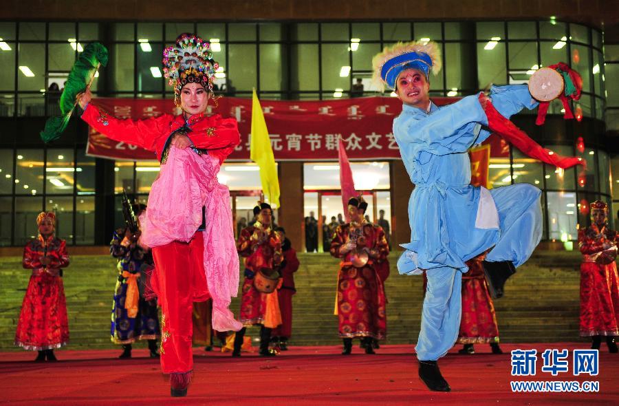 央廣網(wǎng)河南分網(wǎng)消息 3月5日,托克托縣烏蘭牧騎的演員在縣元宵節(jié)群眾文化活動(dòng)上表演。內(nèi)蒙古呼和浩特市的托克托縣是一座歷史文化古城。戰(zhàn)國(guó)時(shí),趙武靈王在此建云中古城,清代更名為“托克托”。在托克托縣,烏蘭牧騎雖然人數(shù)不多,但是一直保持著優(yōu)秀的文藝創(chuàng)作力與生命力,為群眾帶去豐富多彩的文藝表演活動(dòng)。 3月3日,在河南省鶴壁市舉行的第三屆中國(guó)社火藝術(shù)節(jié)暨第十二屆中國(guó)民間文藝“山花獎(jiǎng)”評(píng)獎(jiǎng)活動(dòng)中,由托克托縣烏蘭牧騎排演的社火“雙墻秧歌·老罕王進(jìn)京”獲得第三屆中國(guó)社火藝術(shù)節(jié)金獎(jiǎng)。在剛剛舉辦的托克托縣元宵節(jié)群眾文化活動(dòng)中,縣烏蘭牧騎的演員們把這一劇目搬上舞臺(tái),讓當(dāng)?shù)乩习傩沾箫栄鄹。新華社發(fā)(連振 攝)