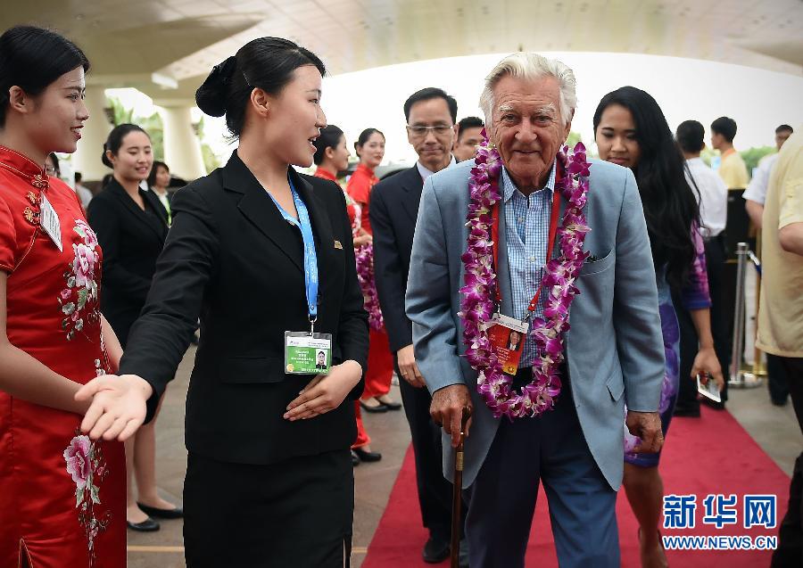 央廣網(wǎng)河南分網(wǎng)消息 3月25日,參加2015年年會(huì)的澳大利亞前總理霍克抵達(dá)博鰲亞洲論壇大酒店。來(lái)自世界各地的政商代表陸續(xù)抵達(dá)海南博鰲,出席即將舉行的博鰲亞洲論壇2015年年會(huì)。 新華社記者 郭程 攝
