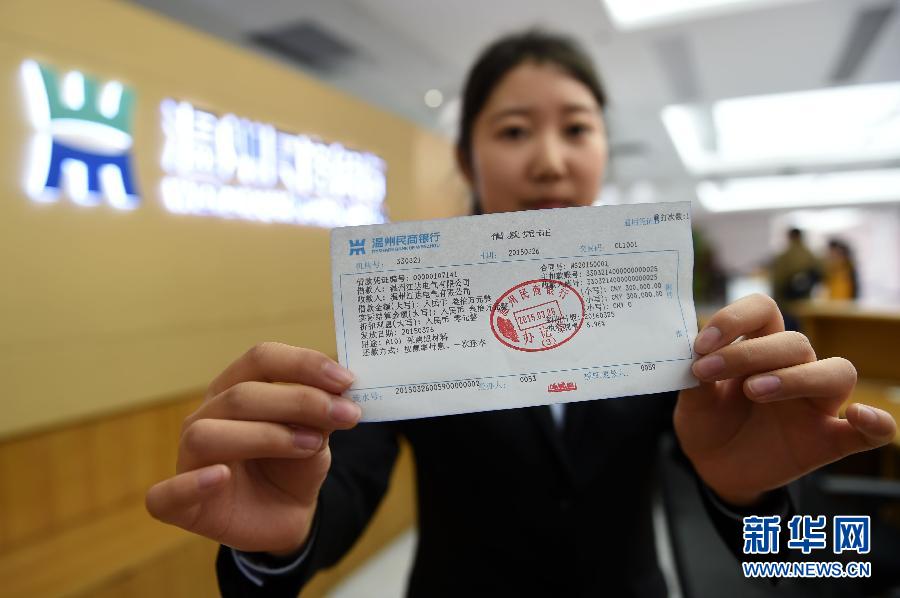 3月26日,工作人員展示溫州民商銀行辦理的第一筆貸款憑證。