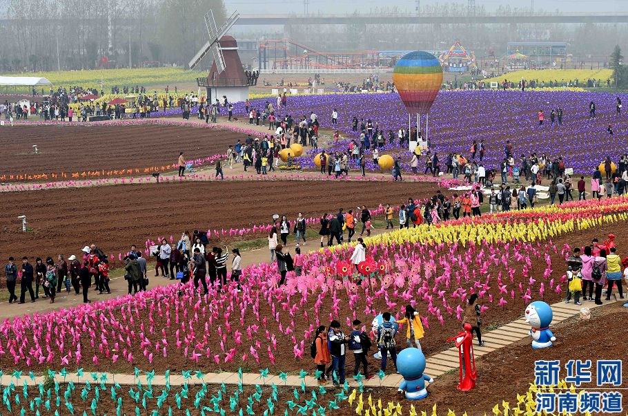 當(dāng)日,在洛陽市中國薰衣草莊園舉行的國際風(fēng)車節(jié)正式拉開帷幕。30萬支五彩繽紛的風(fēng)車組成不同主題的景觀造型,形成一片風(fēng)車的海洋,吸引了眾多游客前來觀賞游玩。 (記者李安攝)
