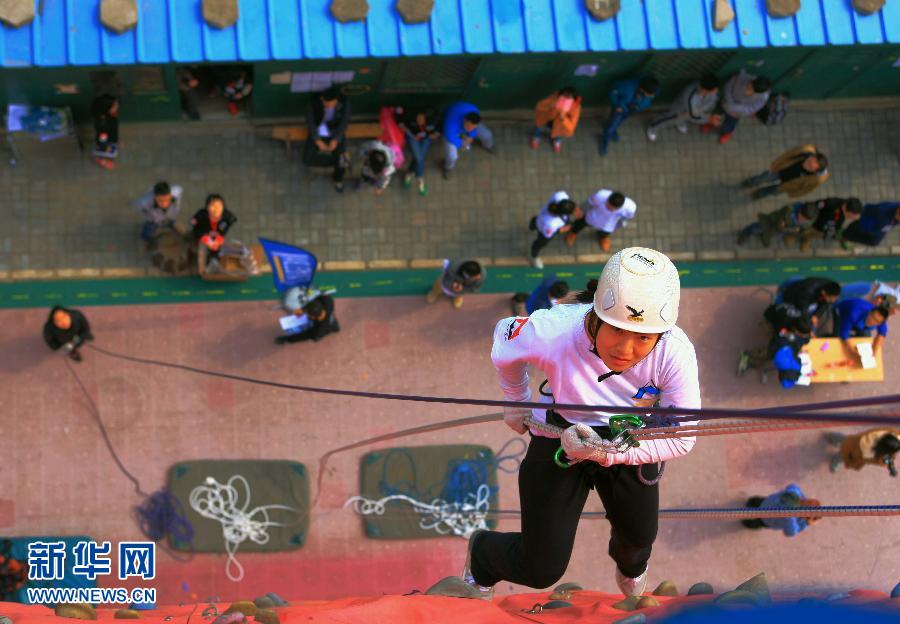 央廣網(wǎng)河南分網(wǎng)消息 4月4日,一名來自天津大學(xué)的選手在第9屆全國高校戶外技能大賽上角逐。當(dāng)日,由北京大學(xué)山鷹社主辦的第9屆全國高校戶外技能大賽在北京大學(xué)山鷹社巖壁開幕。比賽持續(xù)兩天,來自清華大學(xué)、上海交通大學(xué)、廈門大學(xué)、新疆大學(xué)、重慶大學(xué)、沈陽體育學(xué)院等全國24所高校的戶外社團(tuán)代表隊將在攀巖抱石、繩索技術(shù)接力、定向越野和戶外技能比賽中展開角逐,并一同交流高校戶外社團(tuán)的發(fā)展之路。新華社記者郭求達(dá)攝
