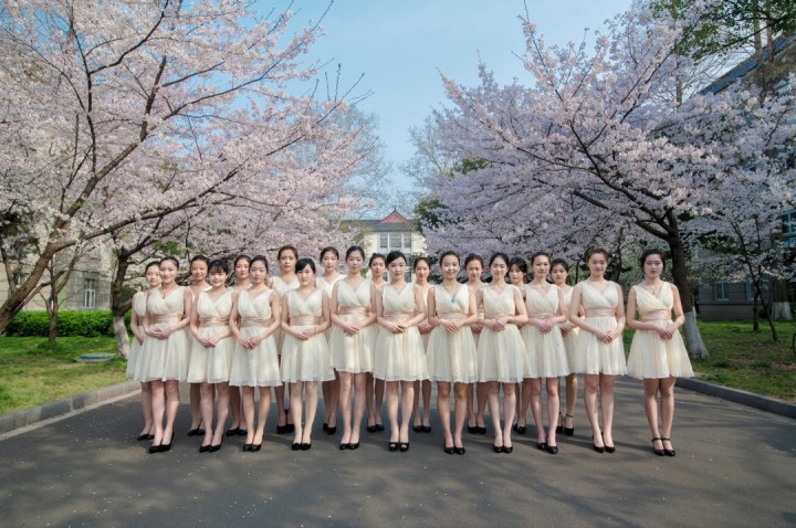 記者了解到,照片拍攝者劉梁暉是南林家具與工業(yè)設(shè)計(jì)學(xué)院的大四學(xué)生,這組“南林天使”照片拍攝于不久前櫻花盛開時(shí)。每年櫻花開得最艷麗的時(shí)候,學(xué)校禮儀隊(duì)的姑娘們都有在櫻花樹下拍合照的傳統(tǒng)。穿上統(tǒng)一的套裙,化好妝的女孩子們在櫻花大道上站隊(duì)后,立刻吸引了賞花人的長鏡頭聚焦。劉梁暉告訴記者,“很多拍攝櫻花的游人都自動(dòng)走到了我的身后,所以照片上的畫面顯得很干凈!(揚(yáng)子晚報(bào)記者 楊甜子)