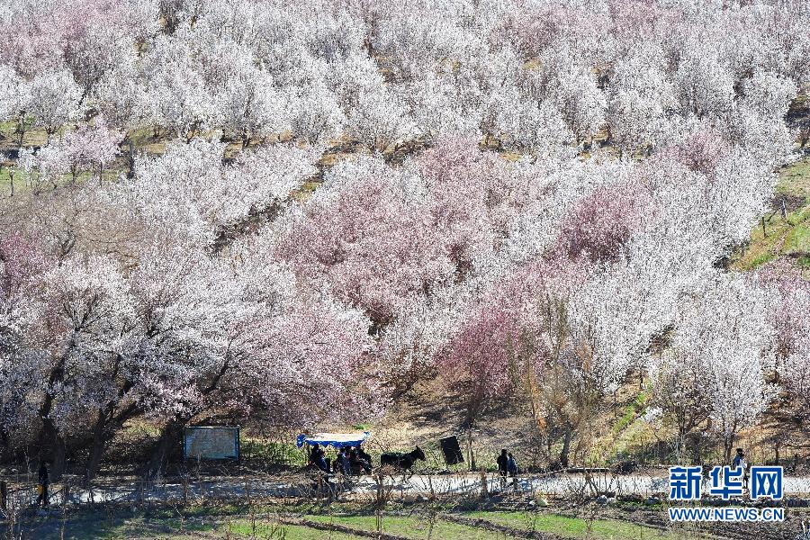 4月11日在新疆哈密市天山鄉(xiāng)石城子村拍攝的杏花林。