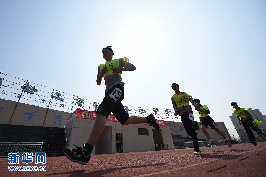 央廣網(wǎng)河南分網(wǎng)消息 4月14日,在合肥市第四十五中考點,男生在參加體育中考的1000米跑考試。 4月13日至17日,2015年合肥市區(qū)中考體育考試在合肥一中等考點舉行,今年共有27390人參加考試。據(jù)了解,此次考試除必考的男生1000米跑和女生800米跑項目外,選考項目由原來的6項15組增加到今年的8項28組,讓考生有更多選擇。今年合肥市區(qū)中考體育考試滿分為50分,其中必考項目20分,選考項目30分,將計入考生中考成績總分。新華社記者 張端 攝