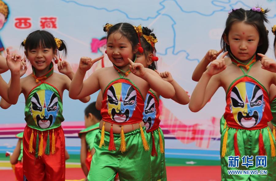 央廣網(wǎng)河南分網(wǎng)消息 5月29日,大一班的小朋友在表演京劇舞蹈“說(shuō)唱臉譜”。當(dāng)日,北京市長(zhǎng)安幼兒園舉行以“放飛童心快樂(lè)旅行”為主題的第四屆藝術(shù)節(jié)活動(dòng),喜迎“六一”兒童節(jié)。小朋友們不僅登臺(tái)進(jìn)行祖國(guó)各地風(fēng)情展演,還參加了手工藝制作等充滿童趣的活動(dòng)。邢廣利攝