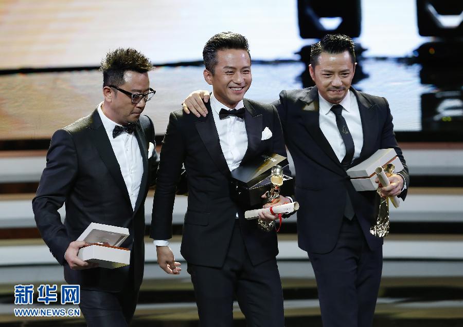 6月21日,演員鄧超(中)、段奕宏(右)、郭濤憑借影片《烈日灼心》獲得“金爵獎”最佳男演員獎。當日,隨著金爵獎獎杯各歸其主,第18屆上海國際電影節(jié)落下帷幕。法國、比利時合拍片《守夜》獲金爵獎最佳影片獎;中國影片《烈日灼心》成為當晚的“大贏家”,導演曹保平獲最佳導演獎,最佳男演員獎則由鄧超、段奕宏、郭濤分享。新華社記者 丁汀 攝