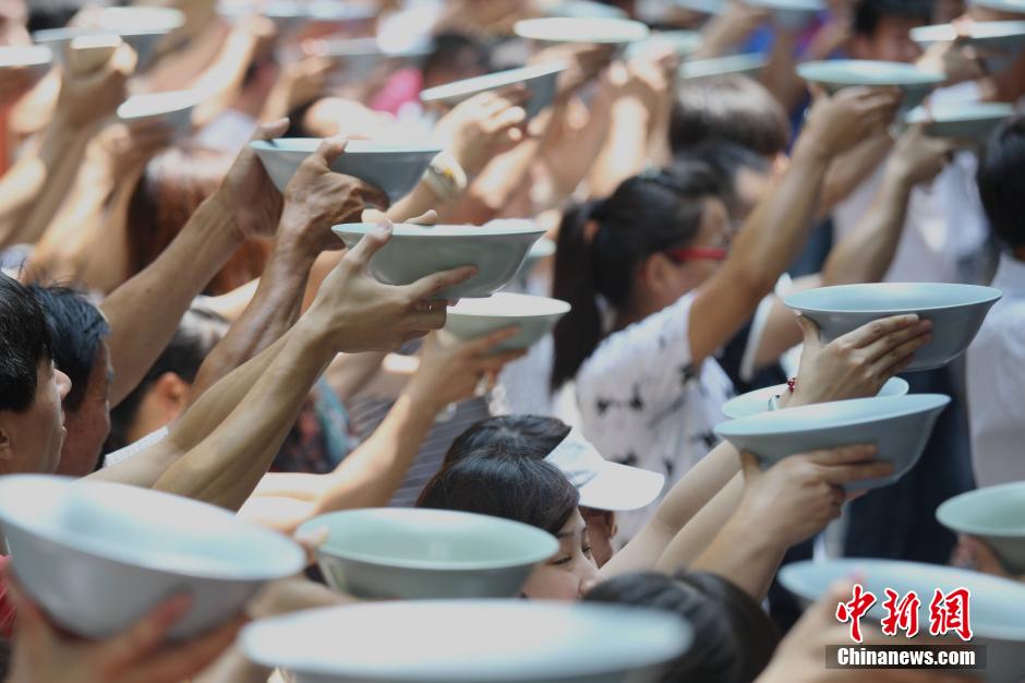 央廣網(wǎng)河南分網(wǎng)消息 7月12日,河南洛陽(yáng)重渡溝啤酒狂歡節(jié)上,為了營(yíng)造狂歡氛圍,讓游客體驗(yàn)快樂(lè)激情,主辦方在竹林幽徑里特推出海碗原漿啤酒免費(fèi)喝,如裝滿一海碗,需要500毫升的啤酒三瓶,對(duì)喝的又快又好者還有禮券獎(jiǎng)勵(lì),吸引現(xiàn)場(chǎng)上千游客高舉海碗開(kāi)懷暢飲上演豪飲,現(xiàn)場(chǎng)十分火爆,場(chǎng)面壯觀!王中舉 攝