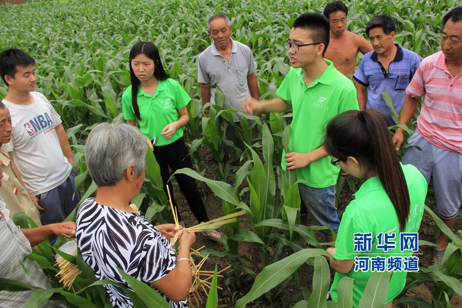 7月15日,大學(xué)生志愿者在向農(nóng)民傳授農(nóng)業(yè)管理知識(shí)。