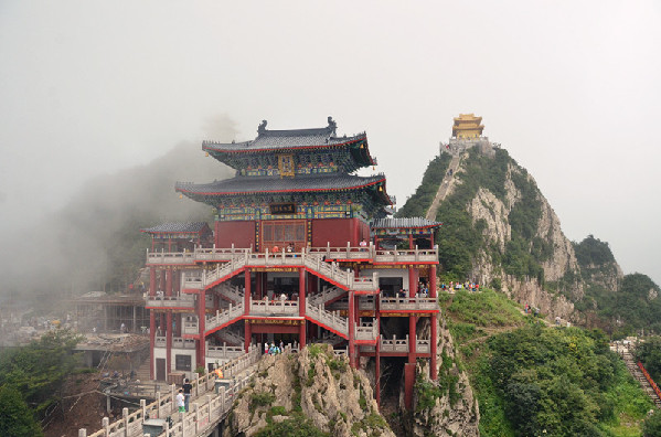 乘著中靈索道,沿途風(fēng)光美景無(wú)限,白云環(huán)繞著青山,青山流淌著綠水。云卷云舒,老君山上金頂忽隱忽現(xiàn),仙氣昂然。
