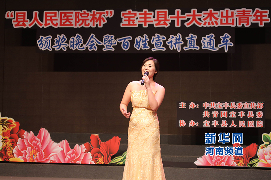 央廣網(wǎng)河南分網(wǎng)消息 7月20日,演員在寶豐縣廣電總臺(tái)演播大廳表演節(jié)目。當(dāng)晚,寶豐縣舉辦“縣人民醫(yī)院杯”十大杰出青年頒獎(jiǎng)晚會(huì)暨百姓宣講直通車文藝匯演。對(duì)獲得“寶豐縣十大杰出青年提名獎(jiǎng)”、“寶豐縣杰出青年集體”、“寶豐縣十佳優(yōu)秀青年”、“寶豐縣十大杰出青年”榮譽(yù)的青年人進(jìn)行了表彰。舞臺(tái)上,充滿青春活力的舞蹈、歌曲等節(jié)目不時(shí)將晚會(huì)推向高潮。