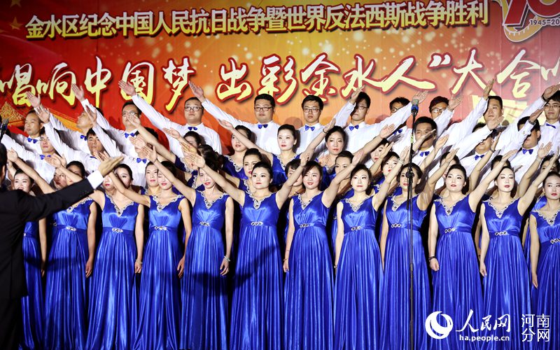 央廣網(wǎng)河南分網(wǎng)消息 7月31日,一首《歌唱祖國(guó)》拉開(kāi)了鄭州市金水區(qū)“唱響中國(guó)夢(mèng) ·出彩金水人”合唱比賽的序幕。 此次合唱比賽是為了紀(jì)念中國(guó)人民抗日戰(zhàn)爭(zhēng)暨世界反法西斯戰(zhàn)爭(zhēng)勝利70周年,來(lái)自金水區(qū)17個(gè)街道辦事處、56個(gè)區(qū)直機(jī)關(guān)局委及轄區(qū)企業(yè)、民間團(tuán)體在內(nèi)的42支代表隊(duì)共2000余人參加比賽,共同緬懷革命先烈,歌頌團(tuán)結(jié)一心、繁榮富強(qiáng)的新中國(guó)。 現(xiàn)場(chǎng)群情振奮,歌聲一首高過(guò)一首,激情一波高過(guò)一波!侗Pl(wèi)黃河》《沒(méi)有共產(chǎn)黨就沒(méi)有新中國(guó)》《愛(ài)我中華》《映山紅》等84首耳熟能詳?shù)慕?jīng)典紅歌一次次將現(xiàn)場(chǎng)氛圍推向高潮。雖不是專業(yè)選手,但合唱隊(duì)員個(gè)個(gè)豪情滿懷,昂揚(yáng)向上,歌聲整齊響亮氣勢(shì)磅礴,表達(dá)了對(duì)黨的忠誠(chéng)和敬愛(ài)之情。(宋芳鑫)