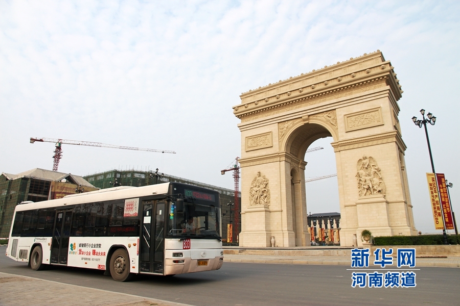 央廣網(wǎng)河南分網(wǎng)消息 鄭州市西四環(huán)一家居市場(chǎng)內(nèi)的廣場(chǎng)上,有一座雄偉的山寨版“凱旋門”格外引人注意,與法國(guó)巴黎凱旋門的造型非常類似,