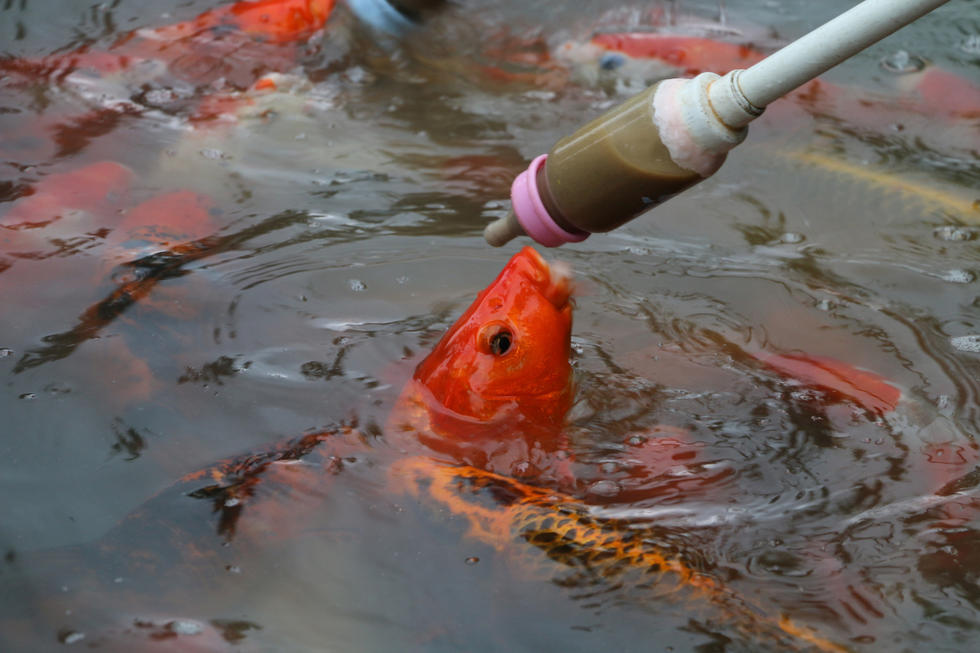 央廣網(wǎng)河南分網(wǎng)消息 2015年08月20日,安徽省合肥市,逍遙津公園湖面長(zhǎng)廊上的用奶瓶給金魚喂食的娛樂(lè)項(xiàng)目,吸引眾多游客參與。奶瓶喂魚是將魚食制成液體裝入奶瓶?jī)?nèi)喂食金魚,新奇有趣的喂食方法吸引眾多家長(zhǎng)帶著孩子的親子游客參與。駐足觀看的游客感嘆“城會(huì)玩”。圖為一只金魚頭躍出水面“喝奶”。