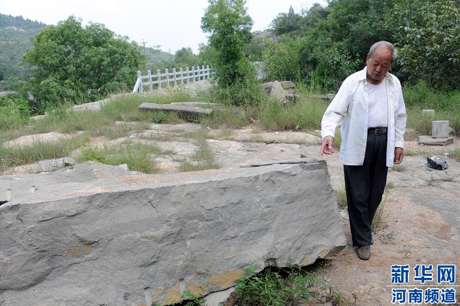 8月24日,在河南省輝縣市張村鄉(xiāng)平嶺村,郭池善查看修橋時(shí)剩余的石料。